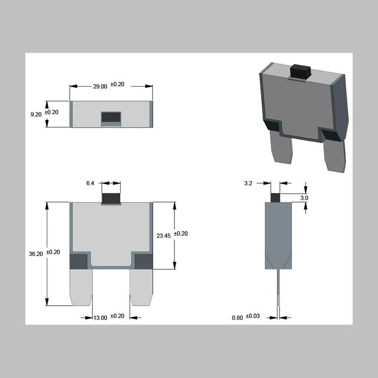• Abmessungen (LxBxH): 29,5 x 9 x 26,5mm (Maße ohne Steckkontakte)